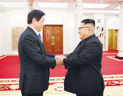 9月9日,中共中央总书记、国家主席习近平特别代表,中共中央政治局常委、全国人大常委会委员长栗战书在平壤会见朝鲜劳动党委员长、国务委员会委员长金正恩。