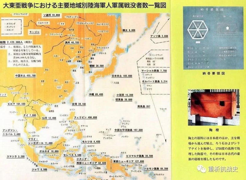 简单的从数字上看,这个数据和厚生省的数据非常相似。但是在日方的靖国神社战殁者地图上又有另一个数据为455700人。和原本的40万人为什么多出五万人?这就要说到三个其它因素: