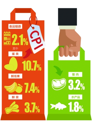 国家统计局9月10日发布的数据显示,8月份全国居民消费价格(CPI)同比和环比涨幅均有所扩大,其中鲜菜和猪肉价格环比涨幅较大。专家分析认为,8月份菜价、肉价波动,主要是季节性因素所致,后期食品价格、服务价格、工业消费品价格仍将保持温和水平,通胀压力没有明显增加。