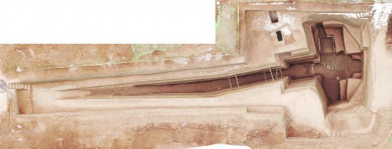 这处位于秦汉新城坡刘村的编号为M4的墓葬,由墓道、天井、封门、甬道及墓室等部分构成,水平全长约39.7米,墓底距开口深11.3米。该墓在天井西壁向内掏挖土洞构筑前室和后室,在前室南、北两侧凿挖土洞构筑南、北侧室,各室皆以条砖砌筑互通。据苗秩飞推测,这座墓应该是东汉时期的墓葬。
