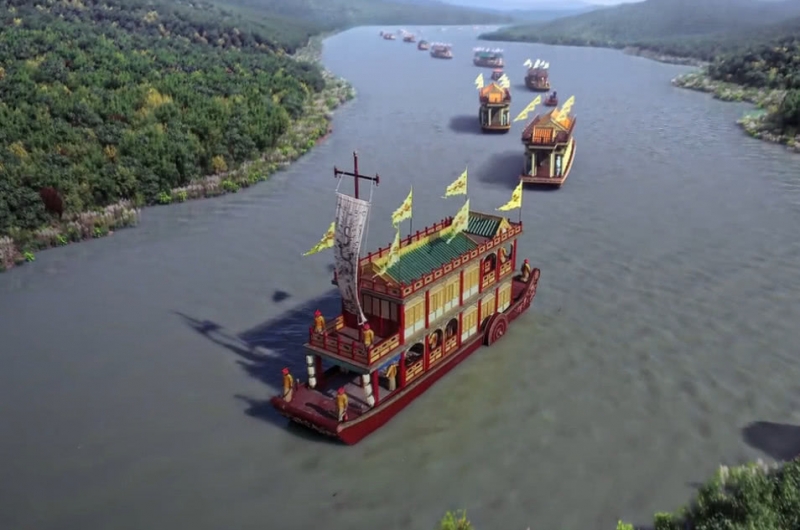 《如懿传》中的道具,小到周迅手中一个小护甲,大到皇帝的抬轿和龙椅,都能看出做工的精细和用心,而要说《如懿传》中哪件道具最贵,那就当数乾隆带着嫔妃们巡游时乘坐的“豪华游轮”了!