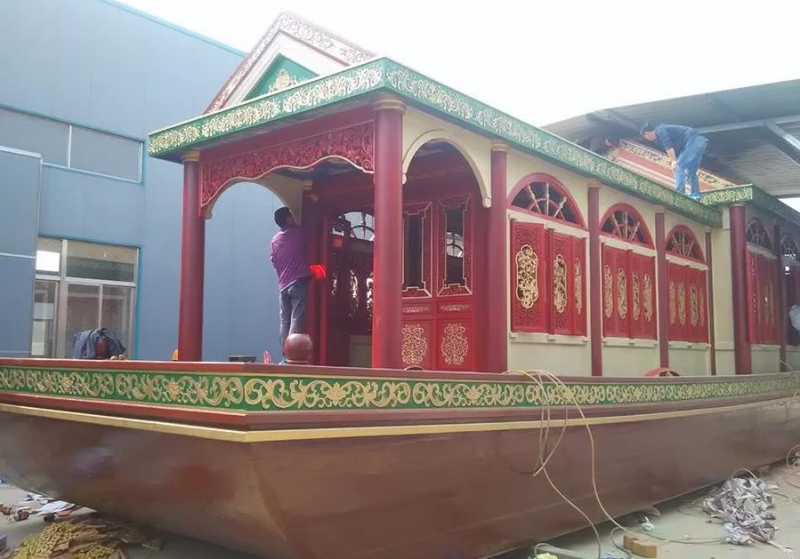 之所以说这游船是《如懿传》中最贵的道具,是因为它是由剧组委托专门的道具制作商设计打造,长20米,宽5.3米,制造费用在240万以上,由于船身太重,被拆分成了众多的部分,送到拍摄现场,拼装好了之后,再由吊车移动至水中,可想而知,整个过程的艰辛。