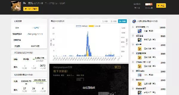 第三方数据显示,粉丝送礼总额约22万余元,弹幕数量为800余条。