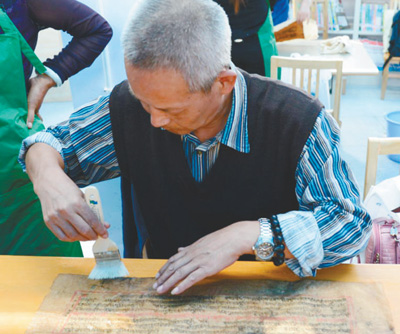 图为云南省图书馆古籍修复组组长杨利群老师为学员示范古籍修复。资料图片