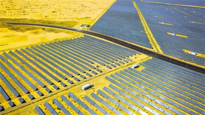 9月11日,在中卫市沙漠光伏产业园光伏电站,太阳能光伏电板一眼望不到边。目前,该园区光伏发电装机达1000MWp,每年可新增上网电量约12亿度,实现产值约11亿元,节约标准煤约39.53万吨。记者 王晓龙 摄
