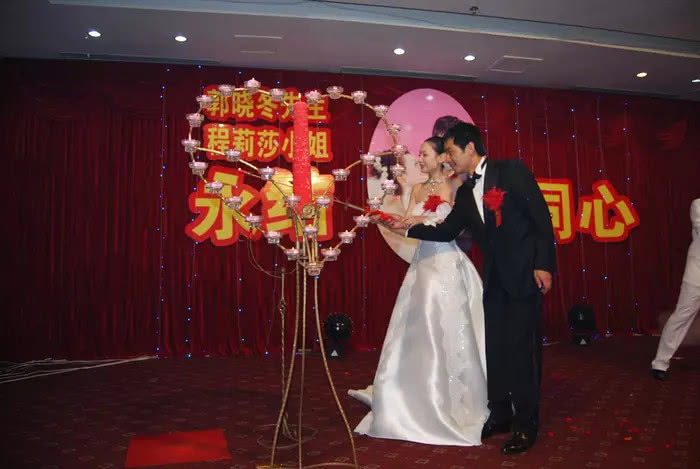 据他们俩回忆,当时婚礼是为了完成郭晓冬爸爸的心愿所以回的农村。两个人在车上一边撒糖一边招手,全村的人夹道欢迎他们,还有人吹唢呐,扭秧歌,场面非常热闹。流水席,所有人只用10元红包就可以参加婚宴吃饭。