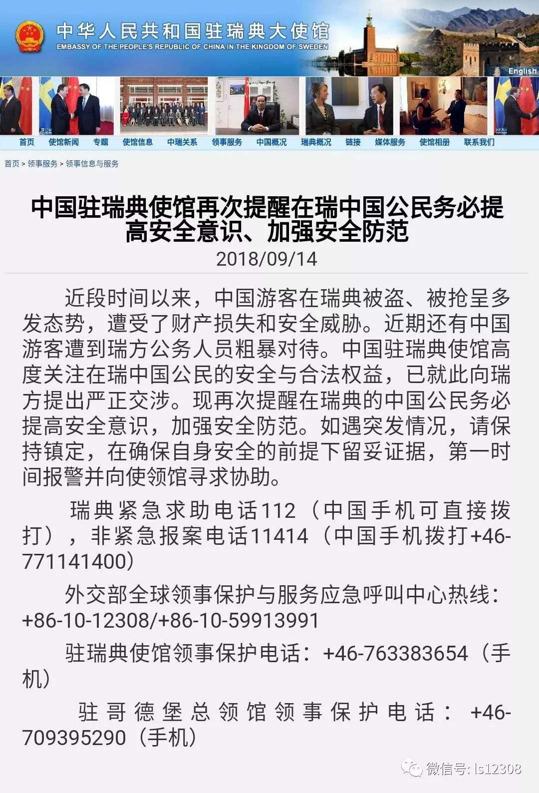 原标题:再次提醒在瑞典中国公民务必提高安全意识、加强安全防范