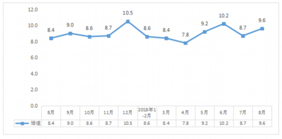 分三大门类看,8月份,采矿业增加值下降8%,制造业增长10.4%,电力、热力、燃气及水生产和供应业增长17.6%。