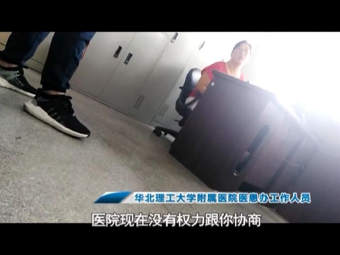 华北理工大学附属医院医患办工作人员说:这个事得找第三方,医院现在没有权力跟你协商,得找医疗纠纷调解委员会。