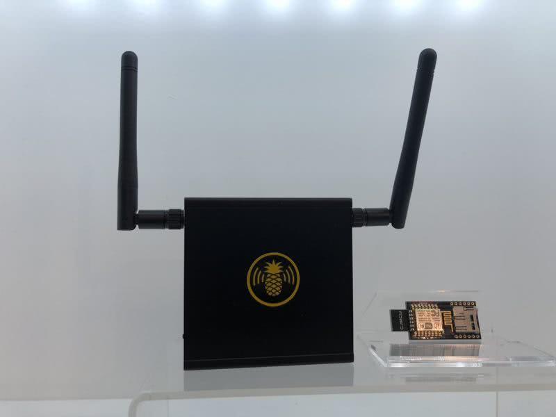 博览会上,有展馆展示了多种网络黑灰产作案工具:能够同时操控16张电话卡进行虚假注册的猫池,成本不足百元却能悄无声息偷走手机短信的“2G短信嗅探设备”,可以任意修改来电号码的VOIP网络电话设备,还有能对目标主机发起远程物理攻击的BadUSB病毒,用于信息窃听流量劫持的大菠萝Wifi Pineapple和伪基站等。