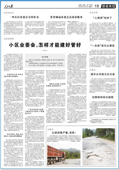 业委会是居民自我管理、维护业主权益、建设和谐家园的重要平台。针对读者反映的问题,记者到北京、上海、合肥等地的一些小区进行了采访,总体看,各地小区业委会建设、管理状况良莠不齐,成立难、履职难等问题较为凸显,小区业委会工作急需更多关注和引导。