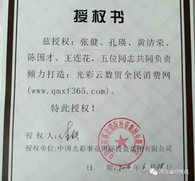 早在2017年1月份,就有媒体曝光光彩集团授权张健(原名宋密秋)、黄洁荣等五人全力打造光彩云数贸全民消费网,而张健是“云数贸”传销组织创始人,“光彩全民消费网”传销组织是黄洁荣在张健授意下成立的。