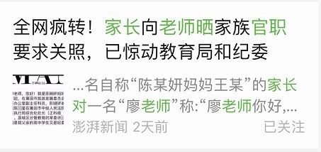 最近在朋友圈里刷屏的“是非”,是一位家长妈妈向老师“花式晒官职”的截图——