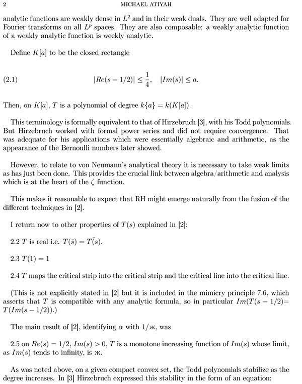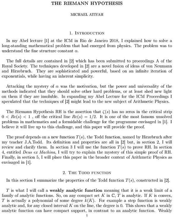 以下是迈克尔·阿蒂亚的黎曼猜想论文预印本全文: