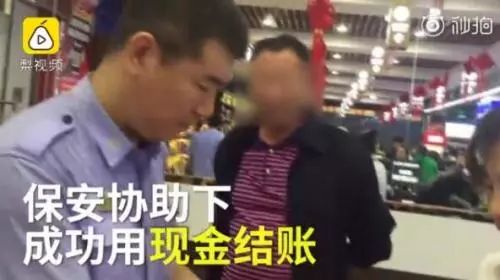 最后,在保安的协助下,谢大爷成功用现金结账。