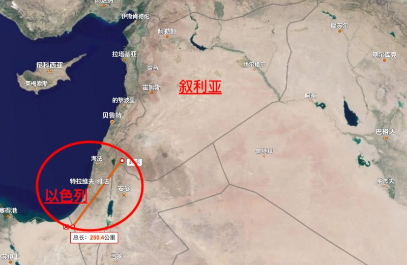 从叙利亚西南边境穿过整个以色列的距离差不多就是250公里。