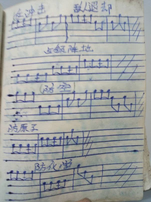 在张付庆提供给环环的号谱中,分别有“进入坑道”、“已向你增援”、“已送弹药”、”要求增援“等分门别类的号谱,简直可以称之为一种公开的声音情报。张付庆介绍,当时号谱一共有90种。“我们首先要把90种号谱熟练背诵下来,然后开始练习发声。”军号分为5线谱,分别是从低至高—塔—打—单—地—里,张付庆加班加点练习,嘴皮磨破了也不停歇。要做到90种号谱熟稔在心没什么特殊技巧,就是一遍遍练习,熟能生巧。