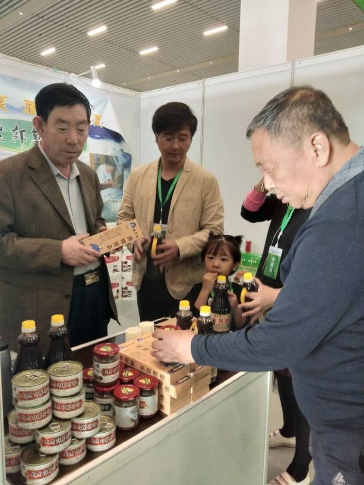 展销会现场(遵化赵老师蘑菇酱创始人向客人介绍产品)