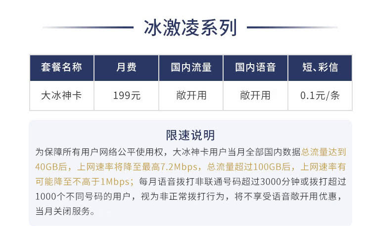 至于中国联通嘛,大家熟悉的冰淇淋系列套餐,不限量套餐名称全部改成了流量敞开用,并且还特别标注了,超出一定流量之后也是选择限速至1Mbps。