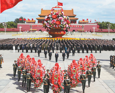 9月30日上午,党和国家领导人习近平、李克强、栗战书、汪洋、王沪宁、赵乐际、韩正、王岐山等来到北京天安门广场,出席烈士纪念日向人民英雄敬献花篮仪式。 |