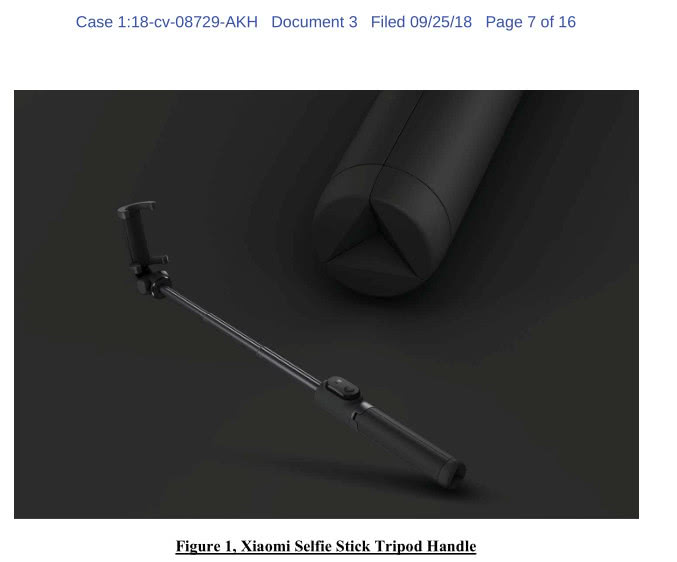 但是,财联社记者获知,9月25日(法院文件显示为9月24日),美国昆毅诉讼律师事务旧将David L. Hecht,以律所Attorneys for Plaintiff Dareltech LLC的名义,代表美国Dareltech公司,起诉小米公司自拍杆专利应用侵权。