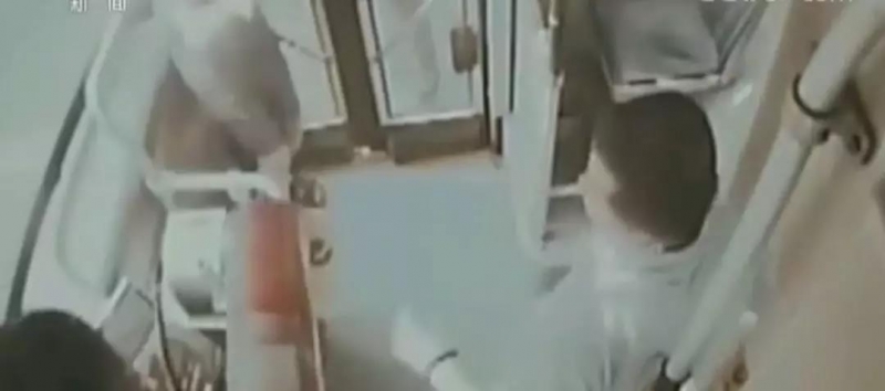 李风军慢慢地走到车厢前面坐了下来。监控录像显示,持刀男子发现后,迅速转身,挥刀指向了这位乘客。