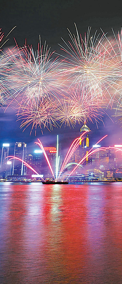 国庆期间,香港国庆烟花汇演在维多利亚港举行。 |
