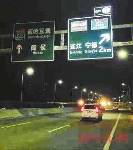 福州交建高速公路养护有限公司工作人员介绍,目前我省高速公路广泛使用的是反光式指示牌,夜间行车的司机需要借助车灯照射,才能识别指示牌,如果碰上雨雾天气,识别难度加大,容易造成有些车辆走错车道。另外,部分司机借助远光灯识别指示牌,对反向车道的行车视线造成了困扰。