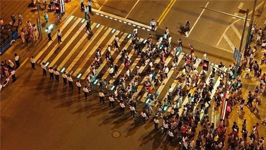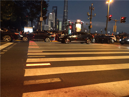 来自浙江的李先生长假期间来上海游玩,从南京东路步行走到外滩,他一眼就发现了这套从没见过的设备。“当红灯亮起时,地灯会显示红色;绿灯亮起来,则转为绿色,非常醒目!”李先生认为,这套系统不仅非常美观,还能够有效避免无意识闯红灯的情况发生。