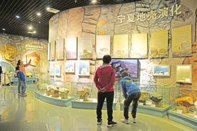 10月5日,家长们带孩子到宁夏地质博物馆,学习了解地壳演变、地质构成、生物进化等知识,开拓眼界。