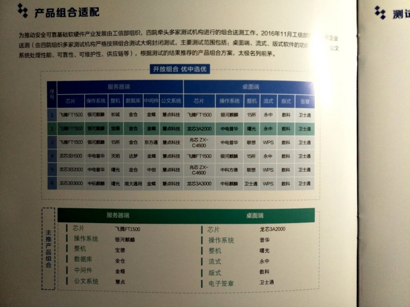 幸运的是,经过我国科研人员的长期不懈努力,我们已经能够提供安全可控的全套IT和网络设备。下面两图拍摄自电科15所下属太极集团的宣传手册。