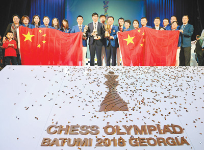 本报北京10月6日电 (记者郑轶)北京时间10月5日晚,在格鲁吉亚巴统进行的第四十三届国际象棋奥林匹克团体赛传来喜讯:中国男队、女队双双逼平对手,最终均凭借小分优势携手夺冠,这是中国国象队首次加冕奥赛“双冠王”,也是国际象棋奥林匹克团体赛自1986年以来首次迎来“双冠”。