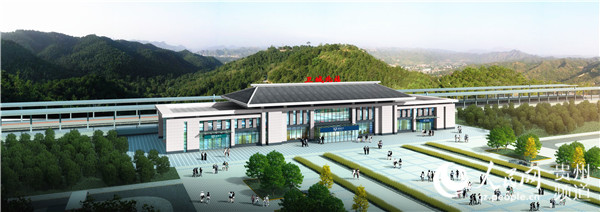 图为大方站建成后的效果图,站房外观设计灵感借鉴了当地彝族同胞头饰的造型
