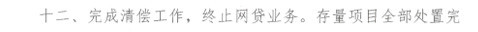 广东《退出指引》第十二条规定,网贷机构在存量项目全部处置完毕、出借人资金清退完成后,网贷机构需要编制清偿报告,将代偿金额、实际清偿金额和清偿方式等在各个官方渠道进行公示。且公示30个工作日无投诉信访,方可退出网贷行业。