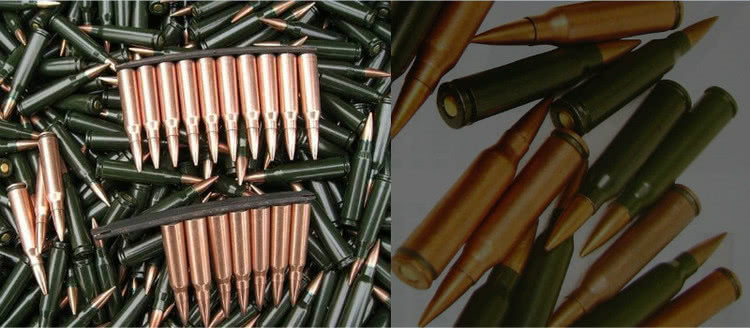 图:左为M16,右为AK47。AK威力可比762通机差得远