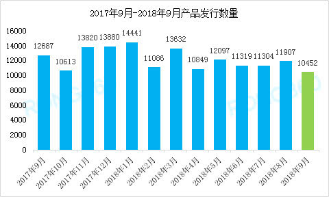 1、2018年9月份银行理财产品共发行10452款,环比减少1455款,环比降幅为12.22%,较2017年9月份减少2235款,同比降幅为17.62%。;