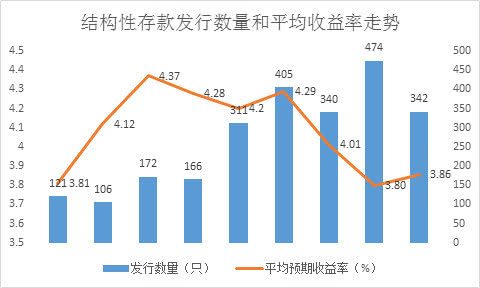 2、据融360不完全统计,9月份共发行342款结构性存款产品,较8月份环比减少27.85%,平均预期收益率为3.86%,较8月上升6BP;