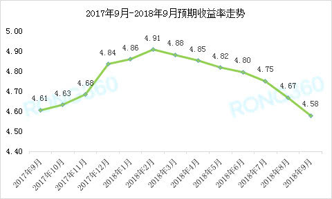 4、融360数据监测显示,9月份银行理财产品平均预期收益率为4.58%,环比下降0.09个百分点,为一年以来的最低值。