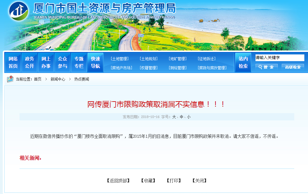 原标题:官方深夜辟谣:网传厦门取消限购政策属不实消息