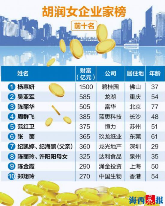 原标题:2018胡润女企业家榜出炉 福建女首富是她们
