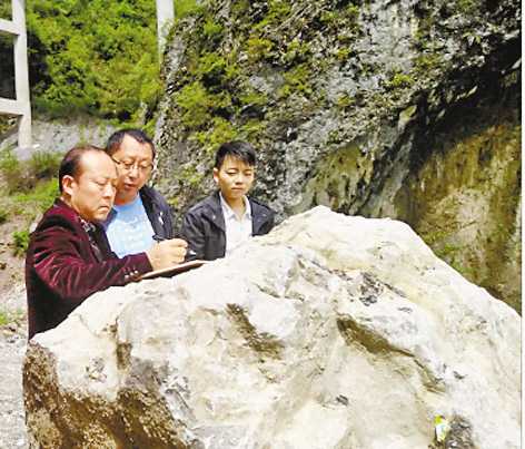 石头为办公桌,王华(左一)在记录走访贫困户情况。(城口县委宣传部供图)
