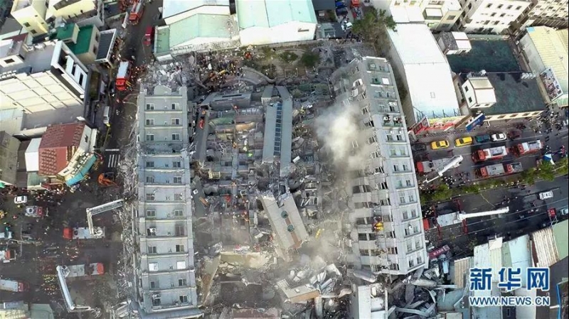 ▲资料图片:2016年2月6日,当日凌晨,台湾南部发生强烈地震,造成严重灾情。图为航拍的台南市永康区维冠金龙大楼倒塌现场。