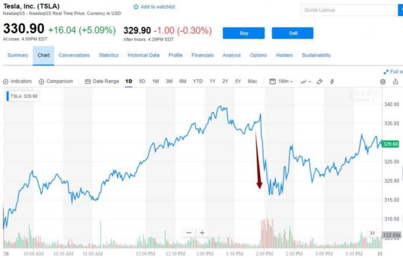 上述特斯拉遭刑事调查的消息传出后,本周五盘中,特斯拉股价短线跳水,一度回吐日内所有涨幅。特斯拉当天追随大盘股价震荡,盘初曾跌超2%,此后转涨,午盘一度涨约8%。