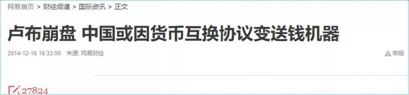 比如,2014年中国和俄罗斯签订了1500亿元人民币/8150亿卢布的货币互换协议,结果当年卢布大贬值,兑美元贬值50%以上,网络上一片呼嚎:中国又犯傻了,和俄罗斯开展货币互换,给俄罗斯送钱了!