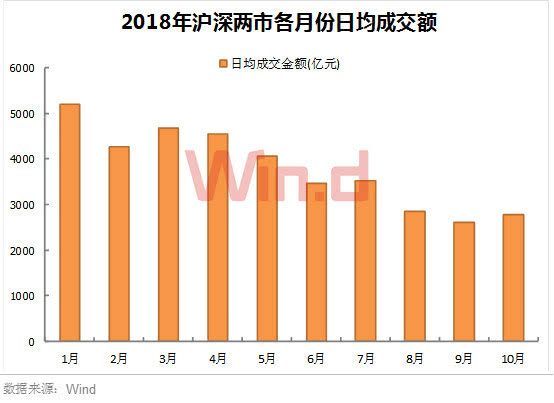 此外,自今年3月份后,A股日均成交额逐月萎缩。8月、9月、10月两市日均成交量基本维持在2700亿左右,仅为年初的一半;而2015年上证5000点时,两市成交量最多达到2.2万亿元,相当于全市场平均换手率达到5%。股谚有云:地量现地价,近期成交量急剧萎缩,上周股指创出近4年新低,预示着底部的临近。