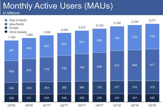 尽管收入取得了高达30%以上的增长,但依然低于市场此前预期,该增速也是两年来最慢季度增速,同时也是既上个季度后,连续第二个季度收入不及预期。此外,最让外界担忧的用户增长数据在该季度中依然呈现出增长疲软的迹象,日活跃用户数和月活跃用户数风别为14.9亿和22.7亿,均不及市场预期。