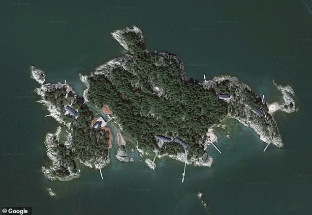 这座岛屿有9个码头,一个直升机停机坪,一个披着迷彩网的游泳池和众多配有卫星天线的房屋。岛上到处都安装着安全摄像头,运动探测器和“非侵入”标志,这里足够容纳一支小型军队。