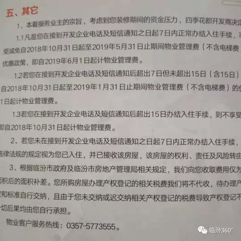 网友@林林反应:您好,我是临汾四季花都一期的业主,现在本来我们应该高高兴兴去交房得,但是出现了一些不合理的收费,和不合理的交房措施,给您反应一下: