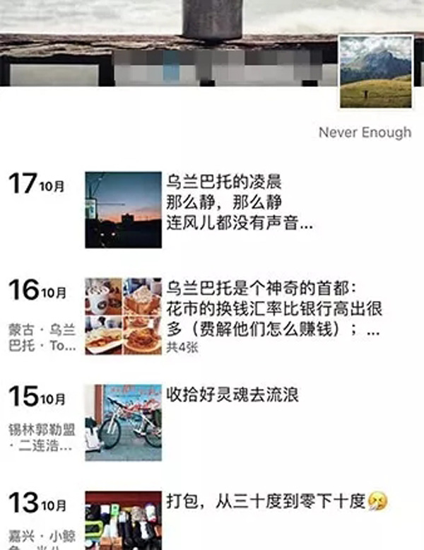 10月17日,毛润新更新朋友圈:是凌晨的乌兰巴托,下一站目的地:murun(木伦)。这是靠近库苏古尔湖的一个城市。