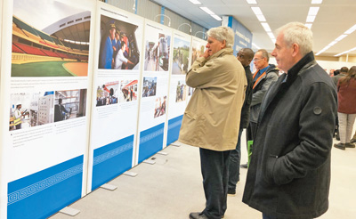“新时代中国人权事业的发展”展览11月5日在瑞士日内瓦万国宫开幕。图为来宾正在参观展览。 |